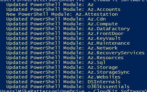 As I am working on a large script I need to be able to keep track on PowerShell module(s) version changes and new modules installed. I could not find one so I created a quick little script to output the current PowerShell Module(s) installed and the version information. The next time you run the script it will compare the results from the current output to the previous output to show you the differences. Below is the output showing changes.
